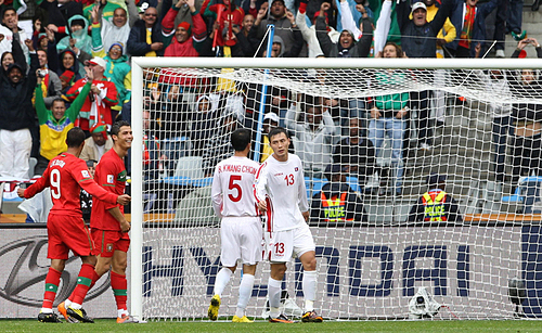 북한이 21일 오후 8시 30분(한국시간) 남아공 케이프타운 그린 포인트 경기장에서 열린 포르투갈과 44년 만의 월드컵 맞대결에서 0대 7로 대패했다. 이로써 북한은 카메룬에 이어 이번 월드컵에서 두 번째로 조별 리그 탈락이 확정됐다.
