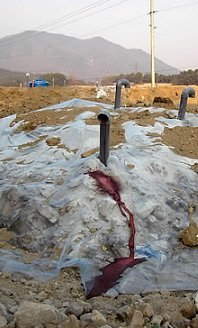 구제역 매몰 과정에서 생매장 당한 돼지 사체들이 부패 과정에서 부풀어 올라 땅을 뚫고 나오는 사례가 계속 보고되고 있다. 지하수 악취 신고도 늘고 있어 주민들이 불안해 하고 있다.