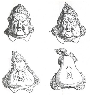 19세기 프랑스의 풍자 만화가 샤를 필리봉은 프랑스의 루이 필립 왕을 '서양배(조롱박 모양)'으로 묘사, '국왕 모욕죄'로 법정에 갔다. 재판정에서 그는 국왕의 얼굴이 '서양배'로 변하는 과정을 묘사한 네 컷 짜리 그림을 제시하는데, 변론이 걸작이다.