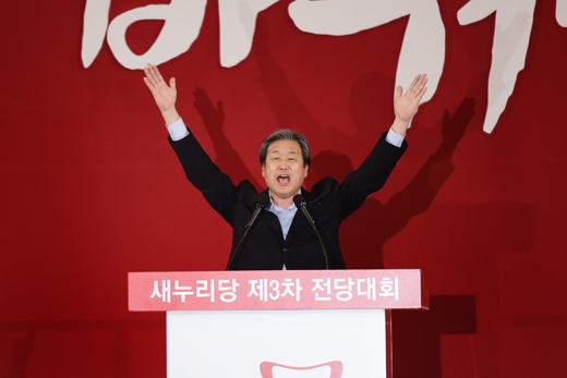 김 신임 대표는 "집권 여당이 왜 존재하는지를 보여줘야 국민들은 우리 새누리당에게 믿음을 주실 것이다. 풍우동주(風雨同舟, 폭풍우 속에서 한 배에 탄 운명)라는 표현처럼 앞으로 어떤 비바람이 몰아치더라도 우리는 한배를 탄 공동 운명체라는 사실을 잊어서는 안 된다"며 "새누리당이 보수 혁신의 아이콘이 되도록 하겠다"고 밝혔다. 김 신임 대표는 "새누리당 만세"라는 구호로 수락 연설을 마무리했다.