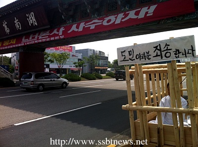 | ▲ 스스로 함거에 갖힌 정운천 전 한나라당 최고위원 ⓒ쌍발통뉴스 |