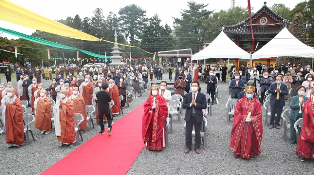이영진 제주부시장이 10일 관음사에서 개최되는 제21회 도민안녕 코로나19 극복 기원 한라산 영산대재 부제관으로 참석했다.