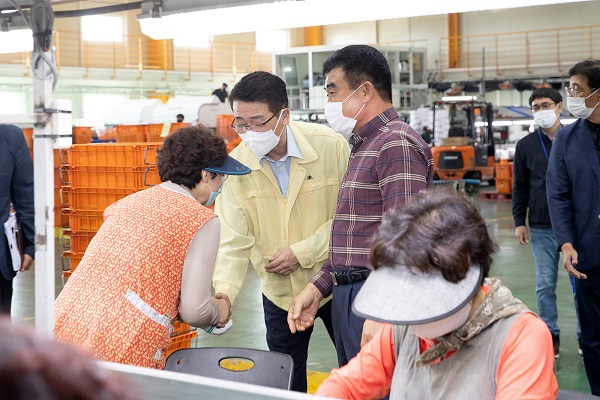 김태엽 서귀포시장이 12일 본격적인 감귤 출하에 앞서 남원읍 위미농협유통센터와 효돈동 과원작목반 등을 방문해 유통상황을 둘러보고 관계자들과 의견을 교환했다.