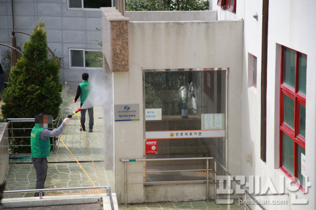 이날 오전까지 부산 북구 만덕동 '해뜨락 요양병원'에서 전날 직원인 485번 환자가 발생한 후 직원 10명과 입원환자 42명 등 총 53명이 코로나19 감염된 바 있다.