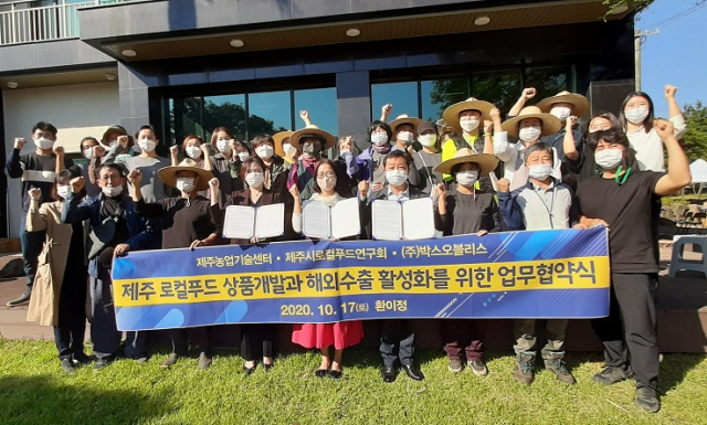 도 농업기술원 제주농업기술센터는 17일 표선면 소재 환이정에서 두 기관과 함께 제주 농가공품 수출판매 활성화를 위한 업무 협약을 체결했다고 밝혔다. 제주시로컬푸드연구회는 22명의 농업인이 소속돼있다.