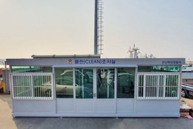 16일 군산해경에 따르면 해상에서 검거된 외국인 피의자(참고인)의 조사를 전담하는 '클린 조사실'을 이날부터 경비함정 전용부두에 설치해 운영에 들어갔다.