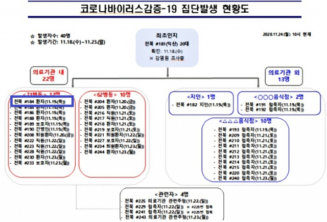 전북 184번째 확진자였던 A 씨는 원광대병원 71병동 입원환자였다.