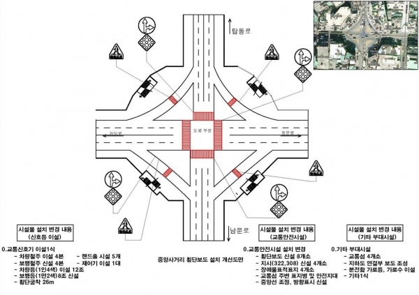 제주시 중앙로 사거리 횡단보도 설치 및 승강기 설치사업은 예산 29억 원을 투입해 중앙로 사거리 횡단보도 설치와 엘리베이터 4기, 동문로터리 방면과 관덕정 방면에 에스컬레이터 6기를 설치하는 사업이다.
