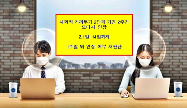 다만, 1주일 뒤에 연장 여부를 재판단하기로 했다. 이 기간 지자체의 자율적 판단에 의한 단계 하향과 방역수칙 조정은 불가하며, 1일 평균 환자수(주간) 등 상황 변동과 장기간 집합금지·운영제한은 겪고 있는 서민경제 애로가 큰 점을 감안, 1주일 뒤 다시 판단키로 했다.