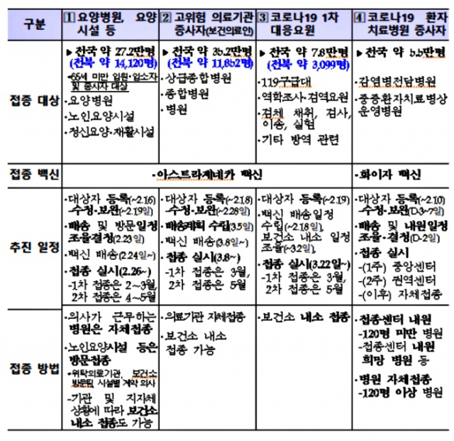 한눈에 보는 접종대상·접종백신·추진일정·접종방법