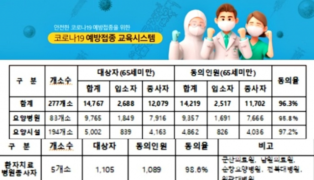 도내 요양병원과 요양시설 277개소의 평균 동의율은 96.3%로 나타났다.