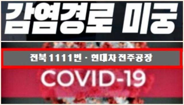 전북 전주에서 감염경로가 확인되지 않고 있는 전북 1111번째와 현대자동차 전주공장발 '코로나19' 확진자가 추가로 발생했다.