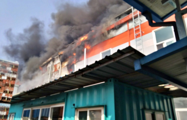 [포토] 시뻘건 불꽃과 검은연기 내뿜는 방충망제조공장
