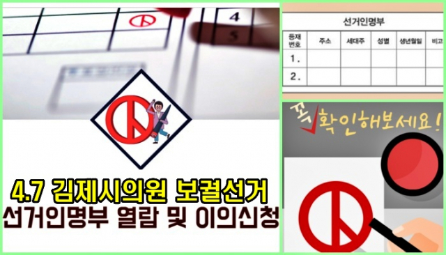 전북선거관리위원회가 오는 4월 7일 전북지역에서 치러질 '김제 나선거구 보궐선거'와 관련해 선거인명부 열람과 이의신청을 받는다.