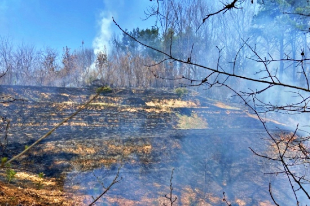 불이 나자 산림과 소방당국이 인력 30여 명과 장비 10대를 동원해 진화작업을 벌였다.