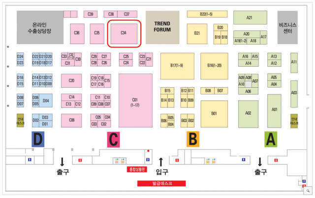 'K-방역 경북, 보건·안전 섬유 제품관' 부스는 전시장 C구역 내 트렌드포럼관 옆 C34(12부스)로 기업인 및 참관인들이 쉽게 찾을 수 있다.