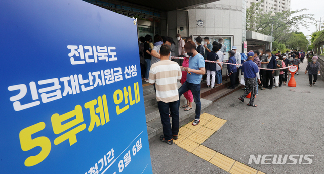 5일부터 지급하기 시작한 전주시내 주민센터마다 하루에 5~6백 명에서 많게는 7~8백 명 이상씩 긴급재난지원금을 지급받기 위한 행렬이 줄을 잇고 있다.