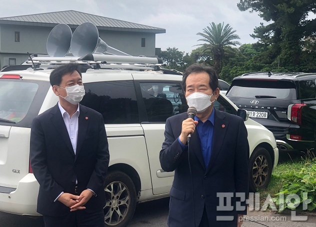 더불어민주당 대권 후보 경선에 나선 정 전 총리는 10일 오전 제2공항 예정지인 성산읍 주민들과의 만남에서 "대한민국 최고 관광지인 제주의 관광 활성화를 위해서는 어떤 형태로든 하늘길을 좀 더 폭넓게 확장하지 않으면 안 된다”고 말했다.