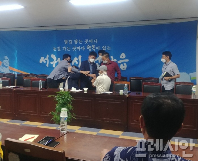 간담회는 성산읍추진위가 환경부의 제2공항 전략환경영향평가 보고서 반려와 대안으로 거론됐던 정석비행장 활용방안 등에 대해 위 의원에게 질의할 예정이었다. 하지만 간담회 도중 위 의원의 예전 발언이 화근이 되면서 고성과 물병투척이 난무하고 도의원과의 삼자대면이 이뤄지는 등 험악한 분위기가 연출됐다.