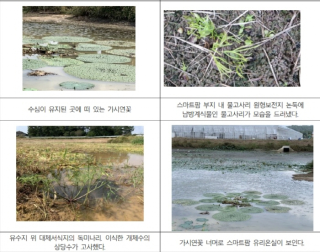 전북환경운동연합에 따르면, 습지 식생을 제거하고 이탄층 바닥을 파헤쳐 만든 김제 백구 스마트팜 혁신밸리 유수지에서 멸종위기종 가시연꽃이 꽃을 피우고 열매를 맺는 등,