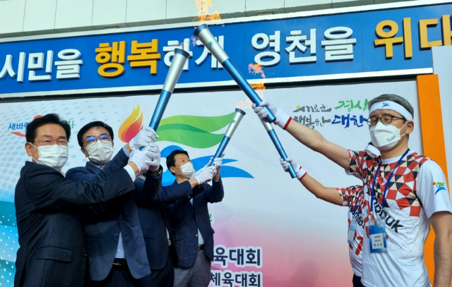 경북 영천시는 7일 제102회 전국체육대회 및 제41회 전국장애인체육대회의 시작을 알리고 성공적인 대회 개최를 기원하는 성화봉송 행사를 가졌다.