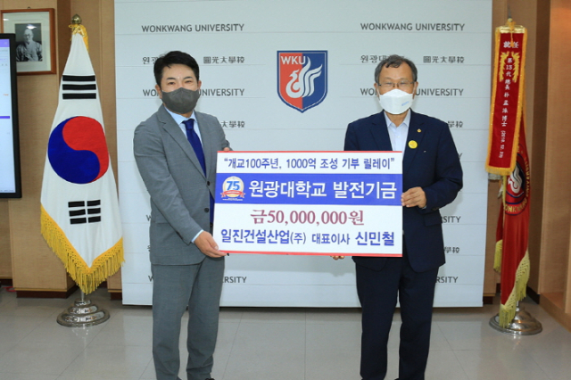 일진건설산업(주) 신민철 대표이사가 원광대학교 발전기금으로 5,000만 원을 기탁했다.