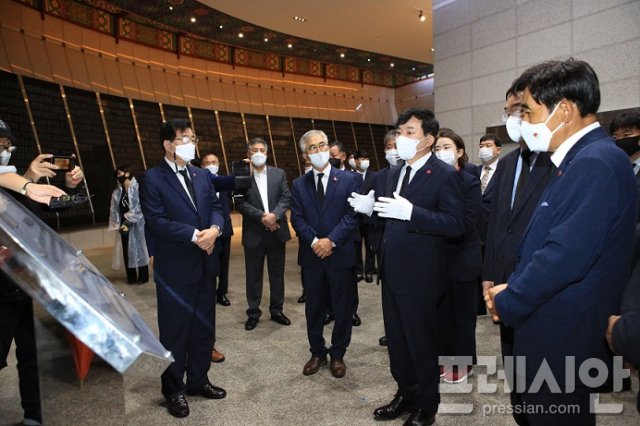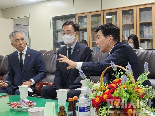 참배 일정을 마무리한 뒤 4.3유족회와의 간담회도 진행했다. 간담회에는 마스크 착용 등 코로나19 방역 수칙을 준수한 가운데 오임종 4.3유족회장 양윤경 전 서귀포시장을 비롯해 김두연 전 유족회장과 사무처 직원 등 최소 인원이 참석했다.