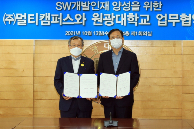 원광대학교와 ㈜멀티캠퍼스가 13일, 원광대 본관 회의실에서 SW인재 양성을 위한 업무협약 체결했다.