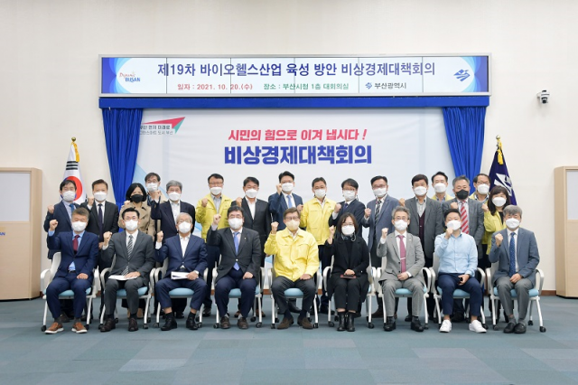 부산시는 20일 바이오헬스산업 관련 기업, 학계, 병원 등 전문가들이 모인 가운데 바이오헬스산업 육성방안을 주제로 제19차 '비상경제대책회의'를 개최했다고 밝혔다.