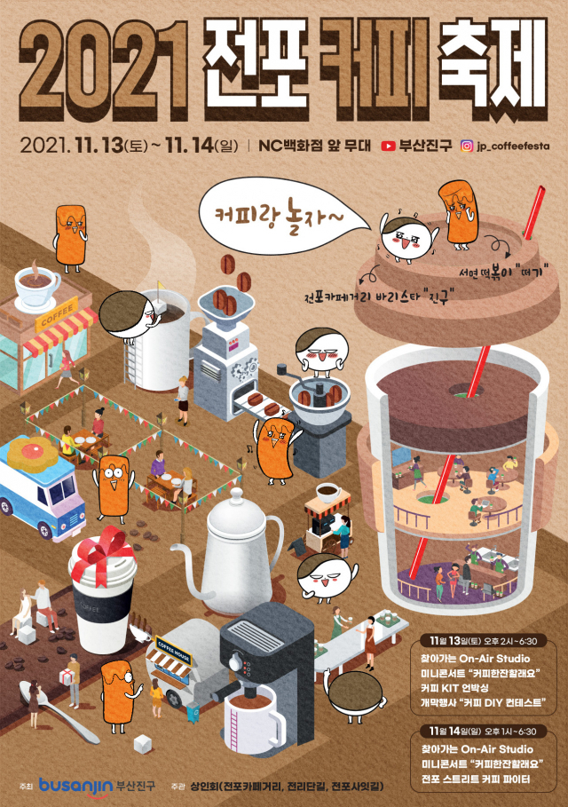 부산진구청은 오는 11월 13일부터 14일까지 이틀간 전포카페거리 일원에서 '2021 전포커피 축제'를 개최한다고 25일 밝혔다.