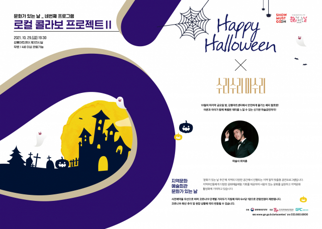 이번 '로컬 콜라보 프로젝트Ⅱ' 공연은 할로윈 영상, 소품, 설치물 등을 이용해 공간구성, 마술공연으로 시민들에게 공연관람 및 전시체험 기회를 무료로 제공한다.
