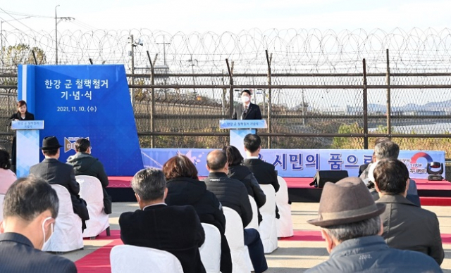 10일 경기도에 따르면 이한규 도 행정2부지사는 이날 오후 김포 누산리 포구에서 김포시 주최로 열린 '김포 한강 군(軍) 철책 철거 기념식'에 참석, 축사를 통해 “접경지 도민 삶의 질 증진의 전환점이 되길 기대한다”고 밝혔다.