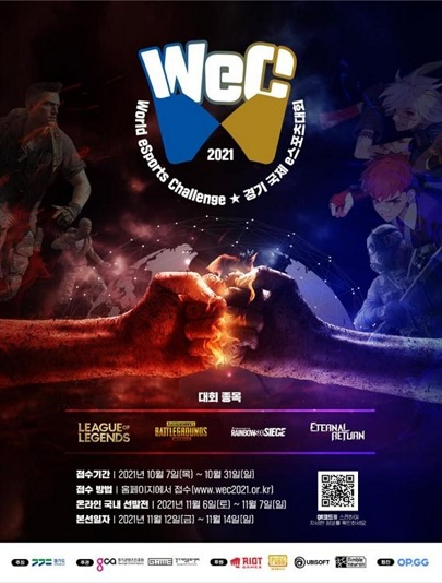 리그오브레전드, 배틀그라운드 등의 최강자를 가리는 '경기 국제 이(e)스포츠대회(World eSports Challenge)'가 12일 오전 10시 경기 광명시 U플래닛 아이백스 스튜디오에서 막을 올린다.