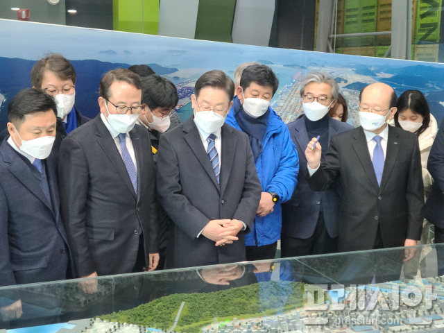 이 후보는 1일 오후 2시 부산항만공사 신항사업소 부산항 홍보관을 찾아 부산진해신항 구축 사업에 대한 현황을 청취했다.