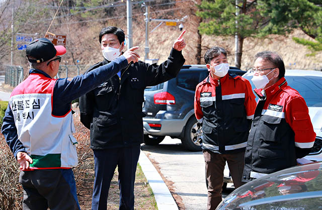 시는 직원뿐만 아니라, 통장, 민간 자생단체 등 300여 명의 산불예방 인력들을 동원해 순찰을 실시하고 있다.