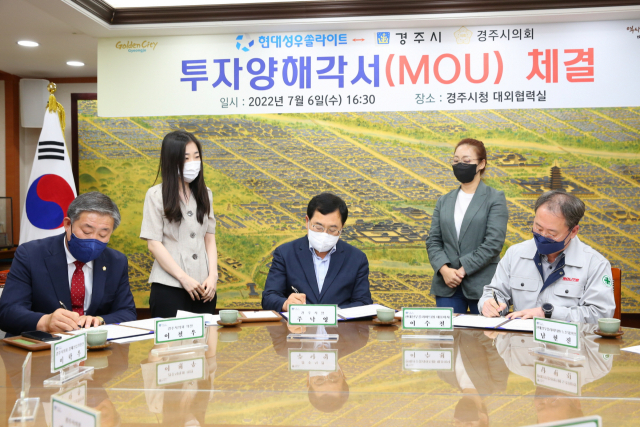 경북 경주시는 6일 시청 대외협력실에서 현대성우쏠라이트㈜와 300억원 규모 경주공장 증설 투자 MOU를 체결했다.