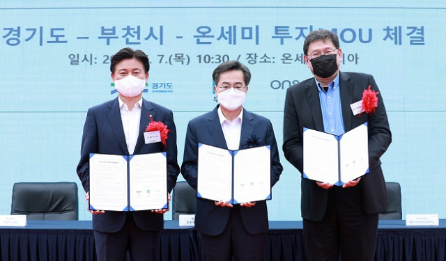 김동연 경기도지사는 이날 부천시 평천로에 위치한 온세미코리아 본사에서 조용익 부천시장, 왕 웨이 청(Wei-Chung Wang) 온세미 최고운영책임자와 투자양해각서를 체결했다.