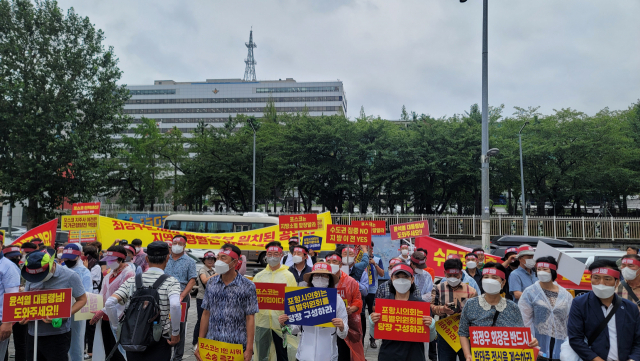 포항시민, 150여명 용산 대통령 집무실, 포스코 서울센터 앞에서 최정우 회장 퇴진 시위