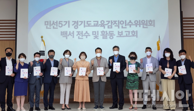 주민직선 5기 경기도교육감직 인수위원회는 8일 경기도교육청 남부청사에서 임태희 교육감에게 ‘주민직선 5기 경기도교육감직 인수위원회 백서’를 전달했다.