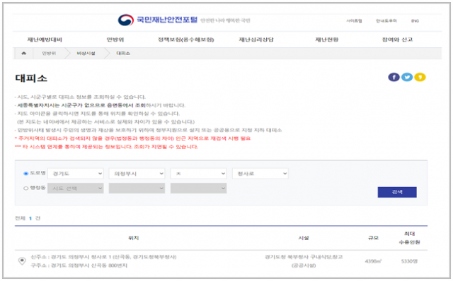 이들 시설의 상세 위치와 이동 경로 등은 '국민재난안전포털(www.safekorea.go.kr)'을 통해 확인할 수 있다.
