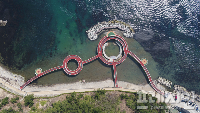 해상다리는 빨간색 바탕에 동그랗게 이어져 여남해변을 따라 바다 가운데까지 걸어갔다가 다시 땅으로 돌아오는 코스로 설계됐다.