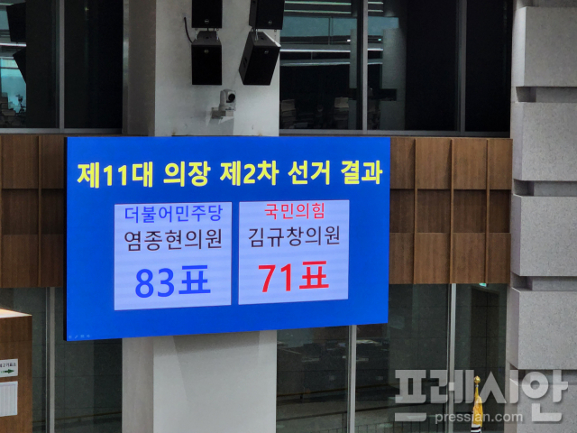 이들이 대표단에 반발하게된 원인으로는 전날 여야 의원수가 78대 78로 동일한 상황 속에서 치러진 의장 선거에서 민주당 염종현 의원이 국민의힘 김규창 의원을 ‘83대 71’로 누르고 당선된데 따른 것이다.