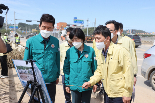 한화진 장관은 이날 인근 하천범람으로 침수된 구룡포하수처리시설을 시찰하고 주요설비에 대해 조속히 정상 가동토록 격려했으며, 구룡포시장을 찾아 피해 주민들을 위로하고, 오천읍 냉천 피해 현장을 함께 둘러보며 신속한 피해복구를 위해 긍정적으로 검토를 하겠다고 밝혔다.