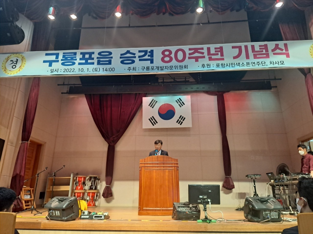 경북 포항시 구룡포읍개발자문위원회(위원장 안주석)는 지난 1일 구룡포읍 자생단체, 주민 등 150여명이 참석한 가운데 ‘구룡포읍 승격 80주년’ 기념식을 개최했다.