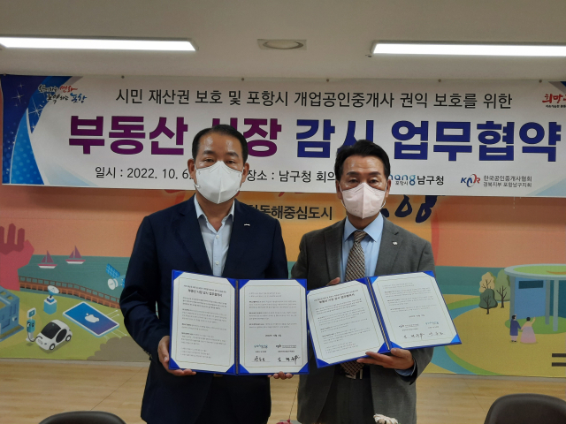 포항시 남구청은 최근 전세가율이 80%를 초과하며, 전세사기가 발생할 가능성이 높아졌다고 판단하고 선제적으로 대응을 위해 한국공인중개사협회 포항남구지회(이하 협회)와 공동으로‘부동산시장감시’ 업무협약식을 체결했다.