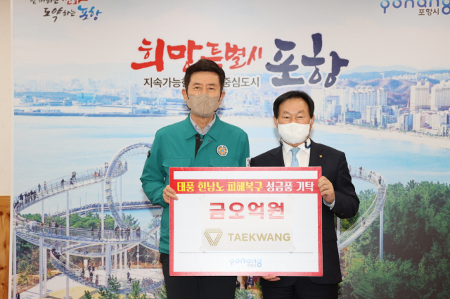 태광그룹은 지난달 발생한 태풍 ‘힌남노’ 내습으로 주택 파손, 도로 및 교량 손실, 농작물 피해, 기업 침수로 인한 조업 중단 등 포항 지역에 막대한 피해가 발생함에 따라 신속한 복구를 지원하는 차원에서 이번 성금 기탁을 결정했다.