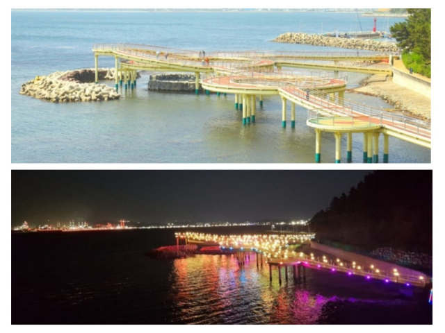 이곳을 지나 해변을 따라 걷다 보면 또 다른 새 명소를 만날 수 있다. 총 길이 463m로 전국에서 가장 긴 해상보도교인 ‘스카이워크’가 올해 여남 해변에 들어섰다. 투명한 유리 바닥 위를 걷다 보면 동해의 푸른 바다와 파도를 그대로 감상할 수 있다.