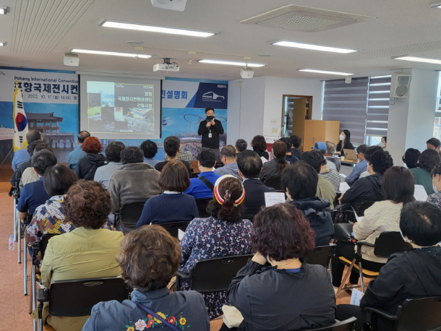 경북 포항시가 지진피해로 위축된 지역 경제 활력을 불어넣기 위해 ‘포항국제전시컨벤션센터 건립사업’을 추진하고 있는 가운데 17일 두호동행정복지센터에서 포항국제전시컨벤션센터 건립사업과 관련해 주민설명회를 개최했다.