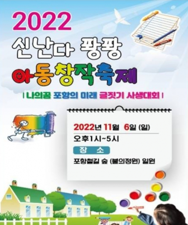 ‘2022 신난다 퐝퐝, 아동창작축제’가 오는 11월 6일 포항철길숲 대잠고가교 일원에서 열린다.