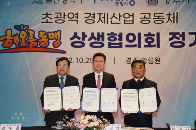 이날 3개 도시 단체장은 해오름동맹이 경제산업공동체로 확장될 수 있도록 공동협약을 체결했다.